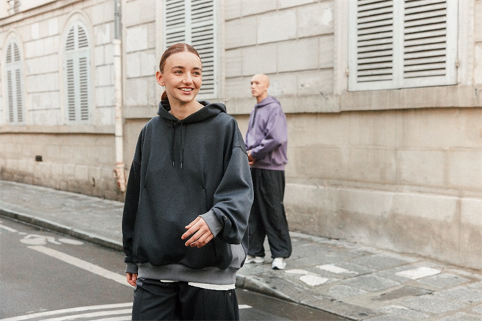 款式方面,全新系列涵盖了夹克、连帽卫衣、印花T恤、长裤、LOGO帽子。其中,连帽卫衣和印花T恤由约50%再生聚酯纤维面料制成,同时印有汲取自品牌哲学的灵感标语。
